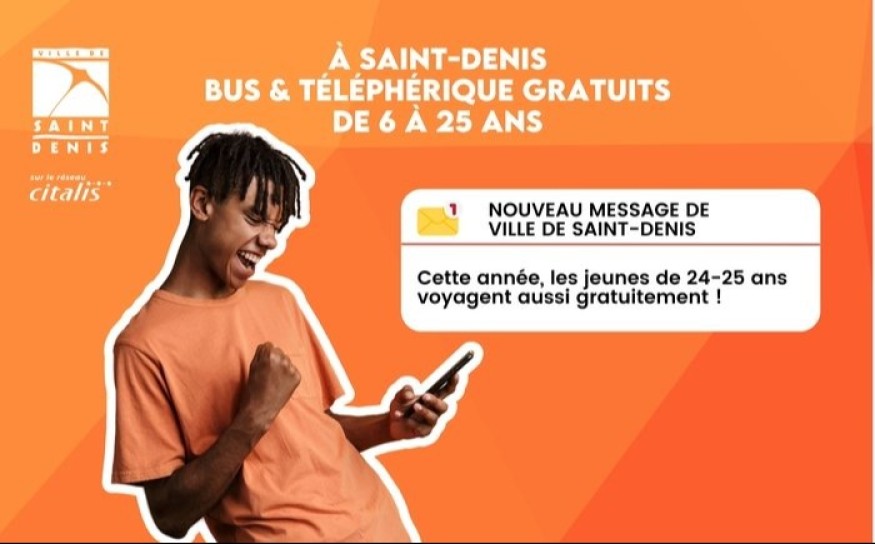 Grâce au partenariat Ville de Saint-Denis - Citalis, le bus et le téléphérique sont maintenant gratuits pour toutes les Dionysiennes et Dionysiens âgés de 6 à 25 ans.